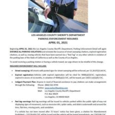 on Parking Enforcement. LOS ANGELES COUNTY SHERIFF’S DEPARTMENT PARKING ENFORCEMENT RESUMES APRIL 01, 2021